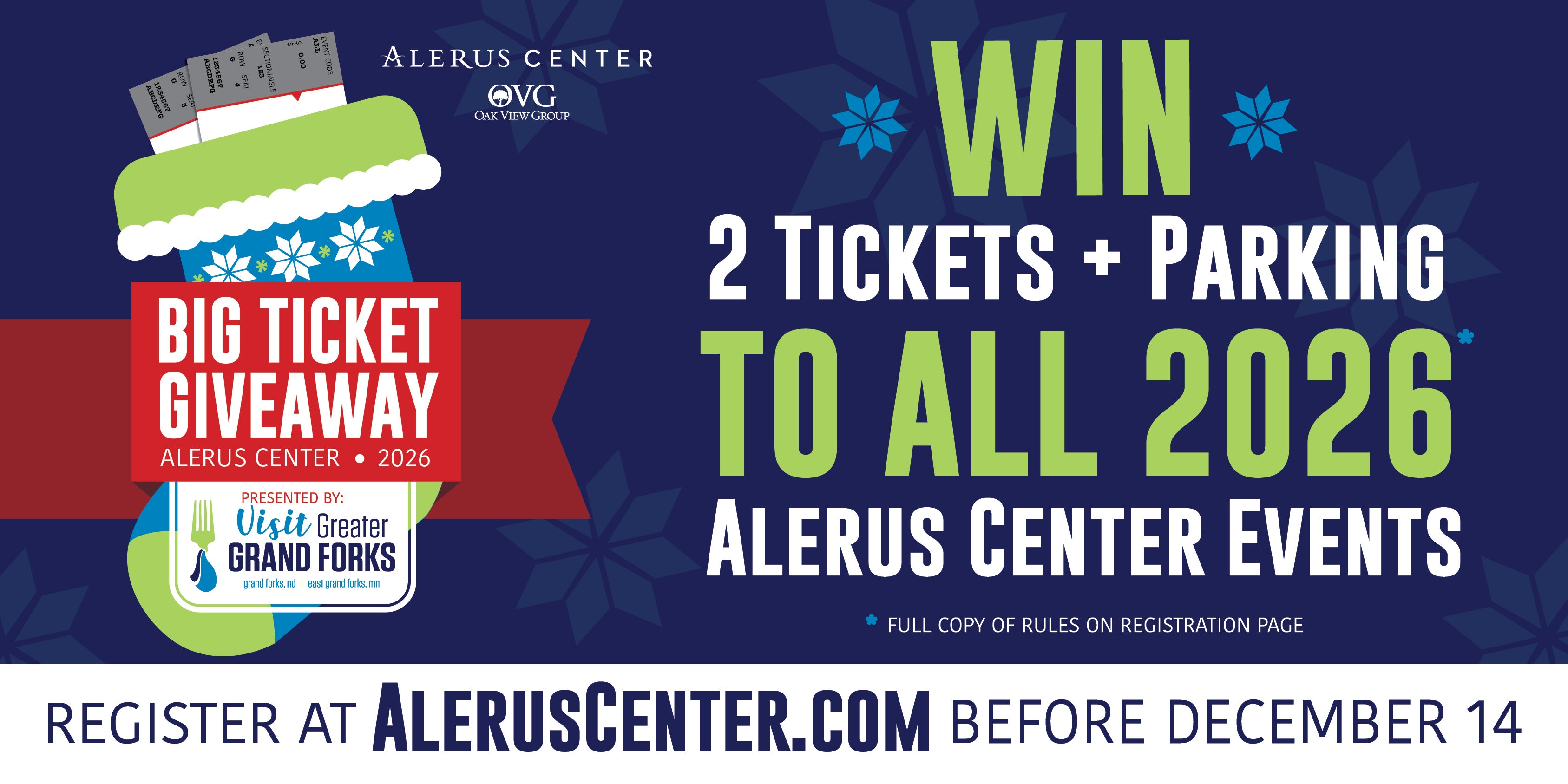 “Visit Greater Grand Forks is excited to partner with the Alerus Center for the Big Ticket Giveaway 2026,” said Julie Rygg, Executive Director of Visit Greater Grand Forks. “With an action-packed lineup ahead, we’re ready to share forksful of fun with visitors and residents alike at the Alerus Center. Don’t miss out!”
